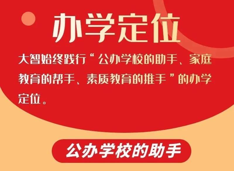 正是得益于精準的辦學(xué)定位,大智才有了明確的發(fā)展方向,前進道路上的指路明燈,能夠精準把握政策脈搏,牢牢抓準發(fā)展主流方向,響應(yīng)國家號召,順利轉(zhuǎn)型升級。大智將繼續(xù)秉持“公辦學(xué)校的助手、家庭教育的幫手、素質(zhì)教育的推手”的辦學(xué)定位,不斷加強教育探索,助推教育事業(yè)發(fā)展,為學(xué)生和家長提供更高質(zhì)量的教育教學(xué)服務(wù)。