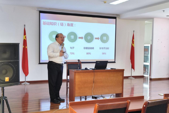 培訓(xùn)中,張朋從理論和實(shí)踐兩個層面對威海四中“低、慢、小、精”的課改理念和“三個中心”課改原則進(jìn)行深刻剖析:理論層面從基礎(chǔ)知識(鏈)角度、基礎(chǔ)題型(鏈)角度、基本能力(鏈)角度論證了“低、慢、小、精”課改理念的合理性和科學(xué)性;實(shí)踐層面基于威海四中學(xué)情和自身經(jīng)驗(yàn),從“基礎(chǔ)知識認(rèn)知弱、基本題型缺定法、基本能力憑感覺、語言態(tài)度糾偏少、寫作從無范文感”五大維度論證學(xué)?!皞湔n以學(xué)生為中心、上課以活動為中心、作業(yè)以雙基為中心”課改實(shí)踐原則的合理性和科學(xué)性。