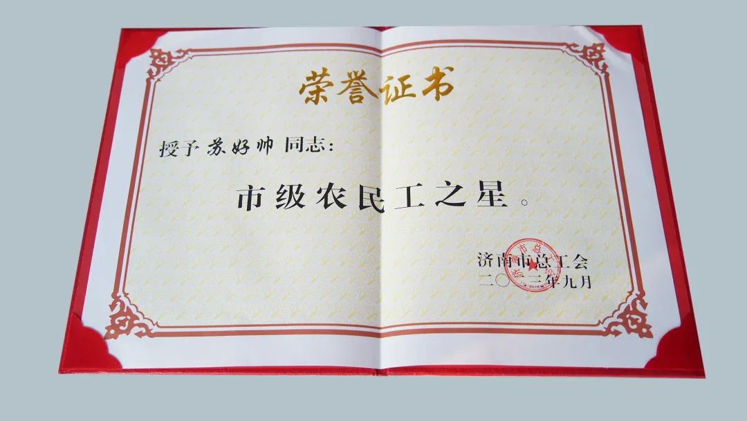 祝賀大智榮獲“市級工友創(chuàng)業(yè)園”,蘇好帥榮獲“市級農(nóng)民工之星”稱號