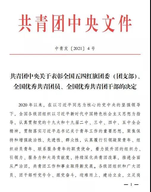 4月27日,共青團中央發(fā)布《關(guān)于表彰全國五四紅旗團委(團支部)、全國優(yōu)秀共青團員、全國優(yōu)秀共青團干部的決定》,山東省濟寧市任城
