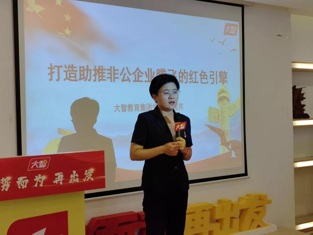 王現(xiàn)芹表示,大智始終履行新時代黨的建設(shè)要求,秉持著“黨務(wù)支持業(yè)務(wù),業(yè)務(wù)反哺黨務(wù)”的黨建理念,旗幟鮮明抓黨建、強(qiáng)黨建,打造黨建引領(lǐng)的企業(yè)文化。近年來,大智教育集團(tuán)黨委在實(shí)踐中探索出“智惠黨建一三九”工作模式,形成“一帶一促”群團(tuán)建設(shè)理念和“智惠+”群團(tuán)建設(shè)模式。