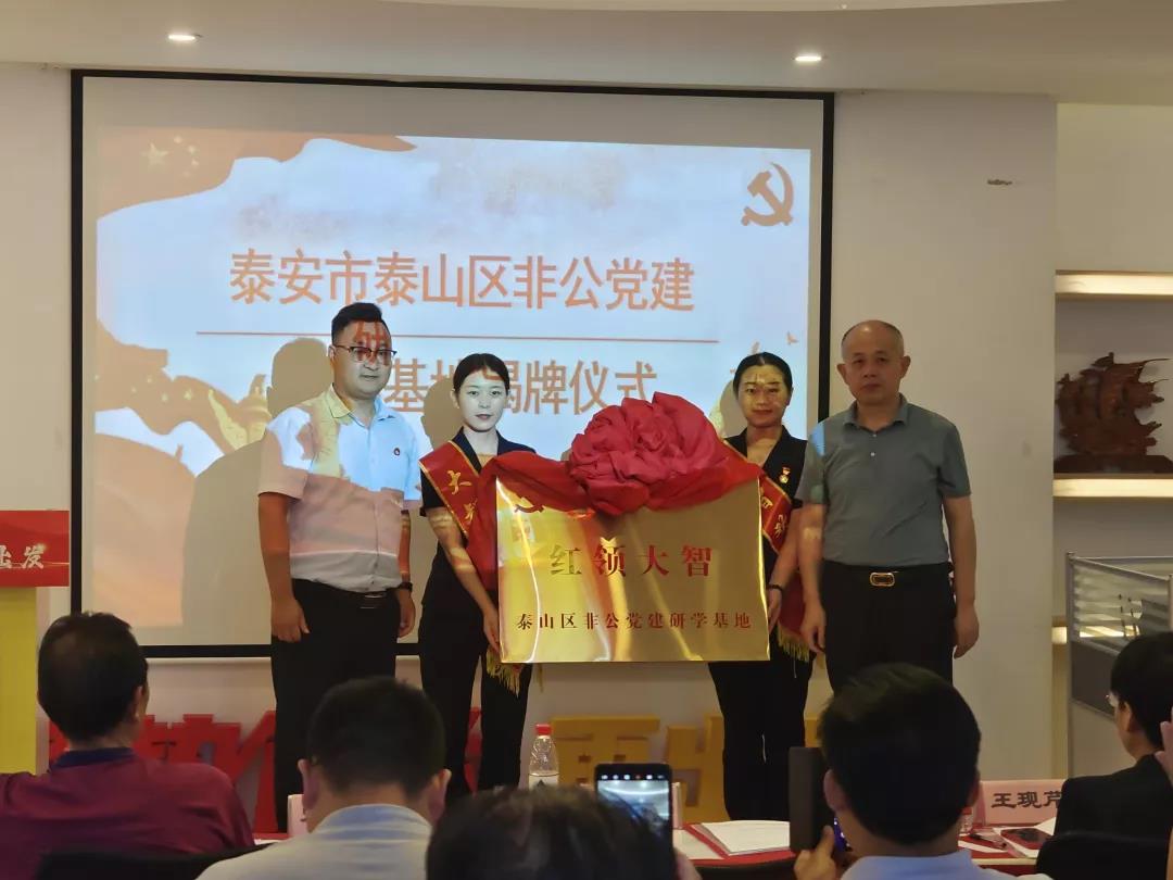 活動中,孫民與泰安大智負(fù)責(zé)人徐國和為“泰安市泰山區(qū)非公黨建研學(xué)基地”揭牌。