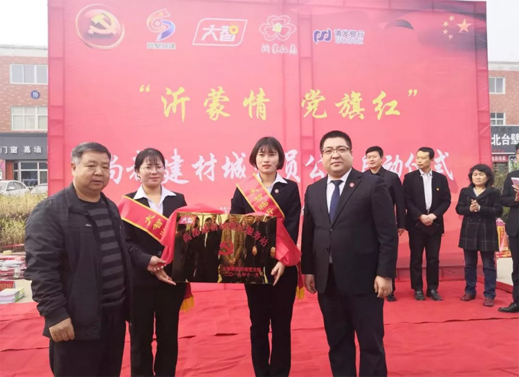 11月30日,臨沂市莒南縣市場監(jiān)督管理局、個體私營企業(yè)委員會與大智臨沂區(qū)域莒南黨支部聯(lián)合組織的黨員公益活動“沂蒙情 黨旗紅”啟動儀式在莒南尚都建材城隆重舉行。莒南市場監(jiān)督管理局副局長、機關(guān)黨委書記逯宗秋,市場監(jiān)督管理局公平交易局局長、個私黨委副書記盧勇成等領(lǐng)導(dǎo)及商城黨員、群眾代表參加活動。