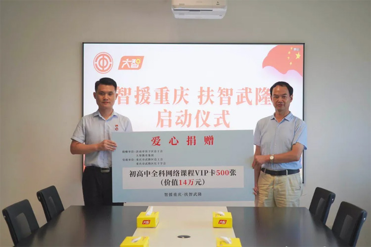 捐贈儀式上,大智為重慶武隆區(qū)捐贈總價值14萬元的大智公開課(初高中全科網(wǎng)絡(luò)課程)VIP卡500張。