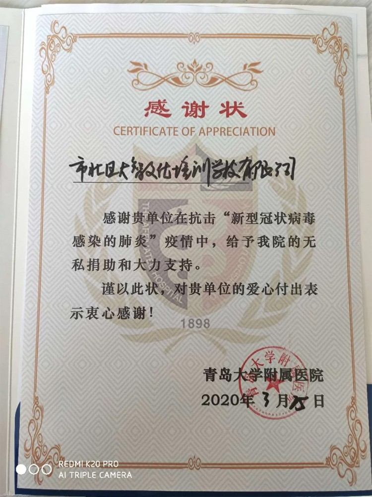 大智青島區(qū)域走進(jìn)青島大學(xué)附屬醫(yī)院為一線醫(yī)務(wù)人員捐贈線上課程“天使卡”2000張,總價(jià)值560000元。