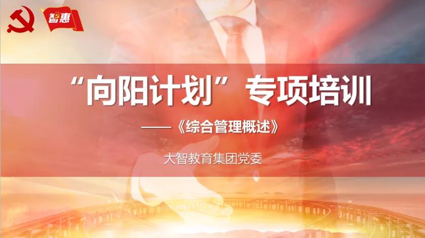 為進(jìn)一步提高黨員骨干的綜合素養(yǎng),落實(shí)好“三個(gè)著力凝團(tuán)隊(duì)”,把業(yè)務(wù)骨干培養(yǎng)成黨員,把黨員培養(yǎng)成業(yè)務(wù)骨干,把黨員業(yè)務(wù)骨干培養(yǎng)成管理人才,為集團(tuán)干部隊(duì)伍輸送新生力量,集團(tuán)黨委從一線選拔了一批思想積極向上、愿意扎根大智平臺(tái)的優(yōu)秀黨員,進(jìn)行“向陽(yáng)計(jì)劃”專(zhuān)項(xiàng)培訓(xùn)。