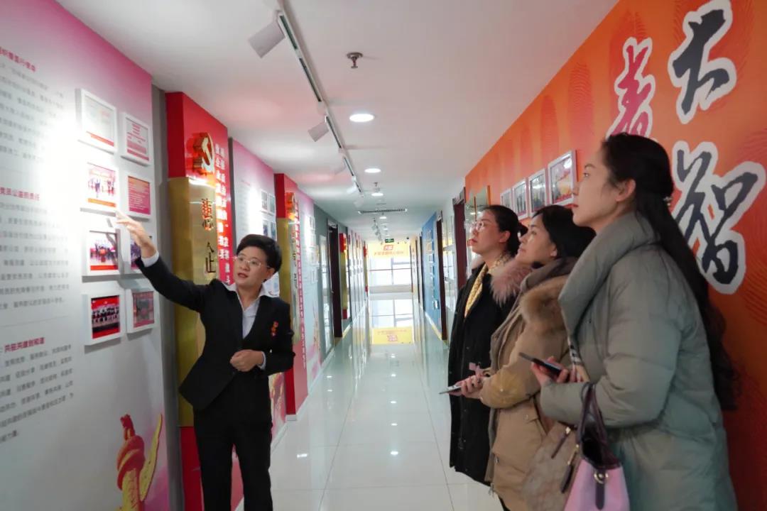 首先,王現(xiàn)芹帶領(lǐng)大家參觀了黨建長廊,詳細介紹了“智惠黨建一三九”工作模式,以及大智發(fā)展情況。