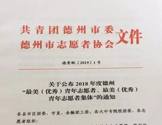 近日,共青團德州市委、德州市志愿者協會聯合發(fā)布《關于公布2018年度德州“最美(優(yōu)秀)青年志愿者、最美(優(yōu)秀)青年志愿者集體”的通知》,大智...