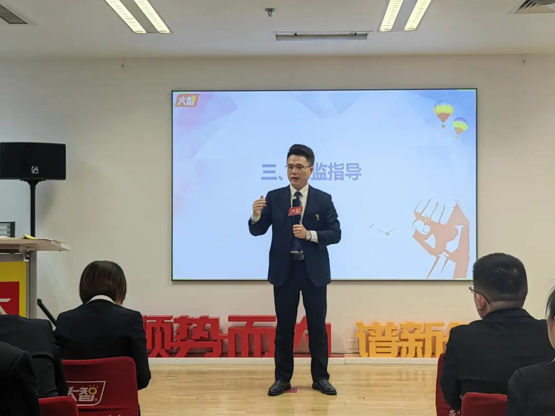 總結會中,兩位督導小組長圍繞教研常規(guī)、數據等進行了整體通報。在本次督導行動中,學科服務所所長分組走進全部開課分校,實地檢查教研常規(guī),深入組織課堂診斷。教學管理各有特色,站立早讀、顧問全程跟課、分階段通關等;課堂活動各有亮點,課前熱身活動充分調動,課中即時反饋、過程性評價,課后解疑答惑、逐個反饋等。發(fā)現(xiàn)優(yōu)秀、樹立榜樣,全面助力于每一位大智學子提升。