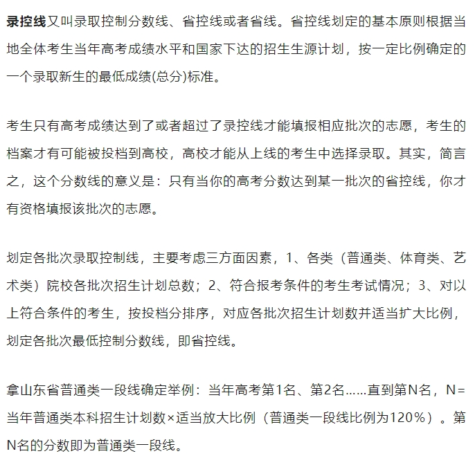 夏季高考普通類劃線辦法