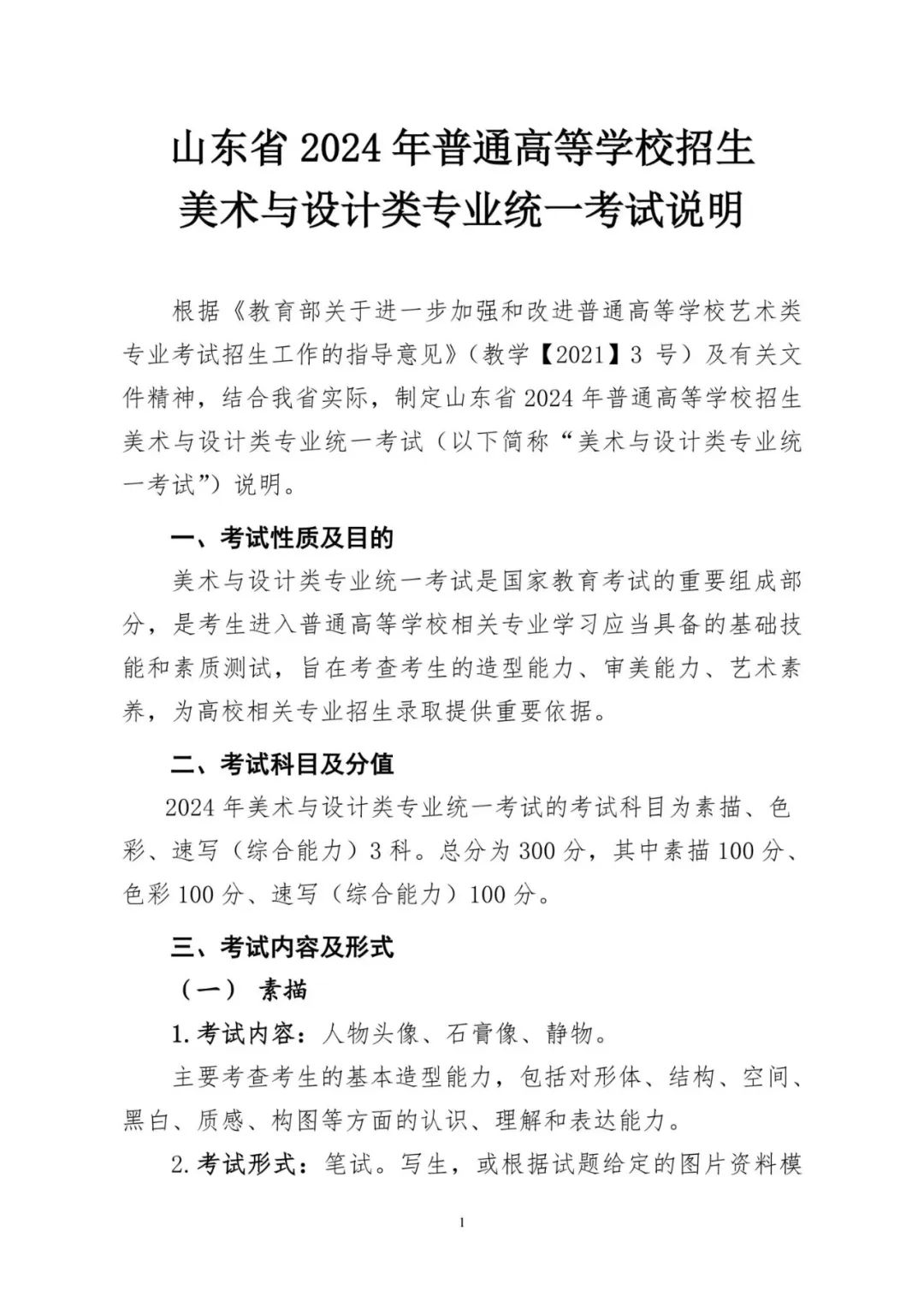美術(shù)與設(shè)計(jì)類(lèi)專(zhuān)業(yè)統(tǒng)考包括素描、色彩、速寫(xiě)(綜合能力)三個(gè)科目,每科目分值均為100分,總分為300分。
