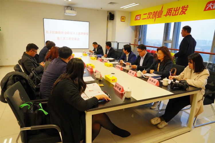 11月20日下午,歷下區(qū)新的階層人士掛職鍛煉第三次交流會在大智控股集團(tuán)召開,歷下區(qū)委常委、統(tǒng)戰(zhàn)部部長杜寶現(xiàn),區(qū)委統(tǒng)戰(zhàn)部二級調(diào)研員、區(qū)社院副院長高振華出席會議。