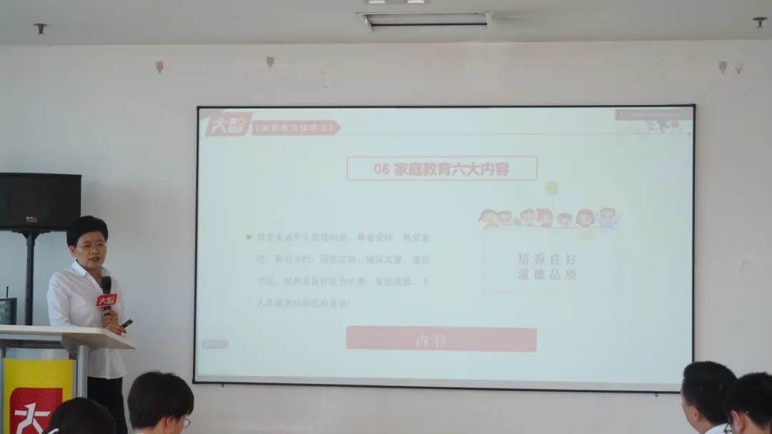 會上,大智控股集團黨委書記、婦聯(lián)主席王現(xiàn)芹為大家做了《中華人民共和國家庭教育促進法》培訓(xùn),教育引導(dǎo)大家依法開展家庭教育、關(guān)愛子女健康成長。