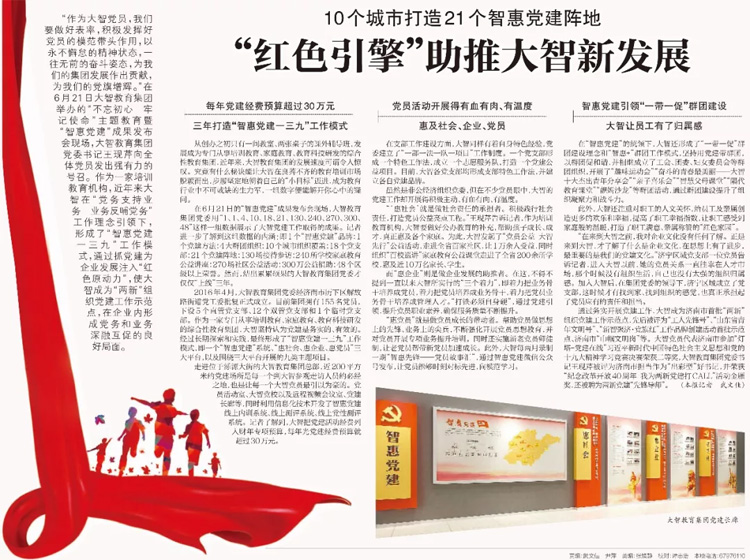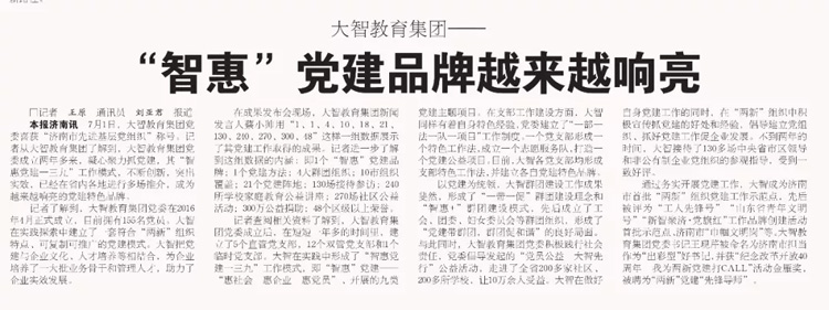 《濟(jì)南日?qǐng)?bào)》在建黨節(jié)當(dāng)日對(duì)大智黨建進(jìn)行了全面深度報(bào)道。