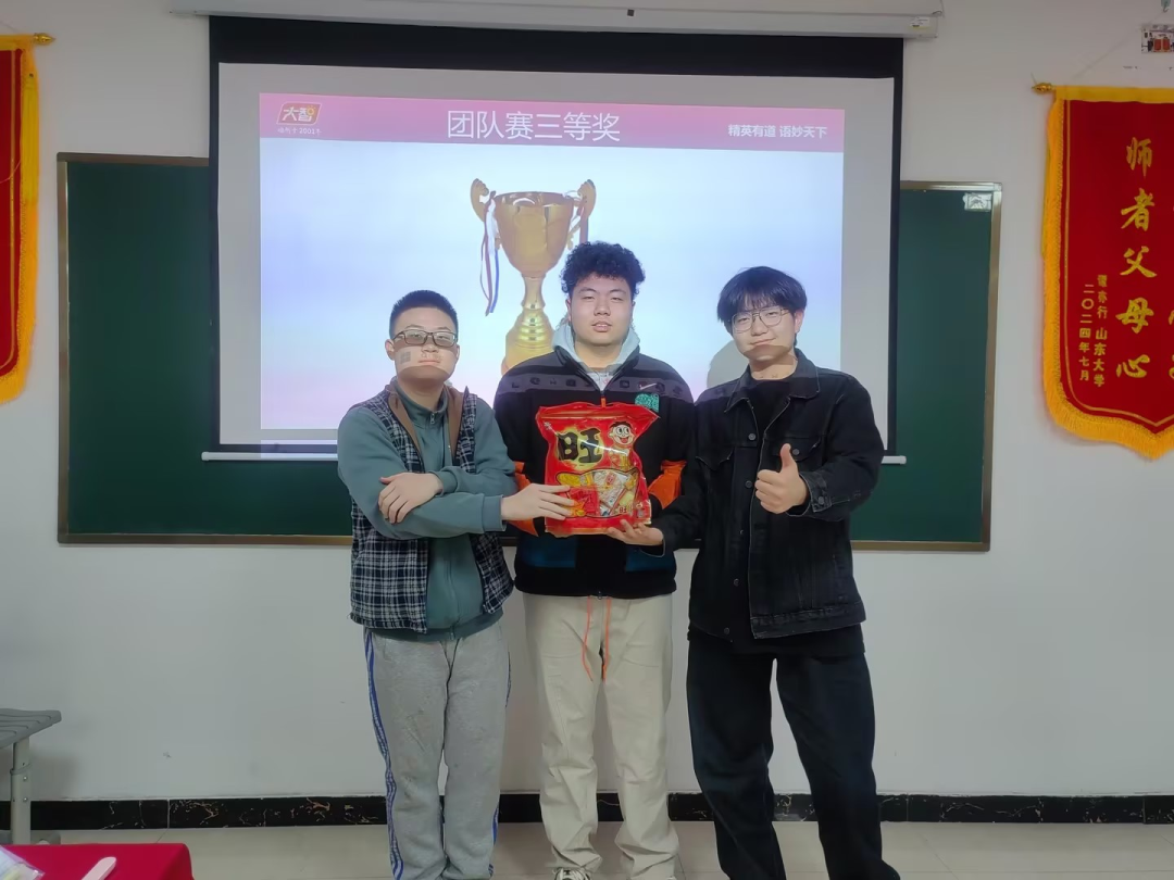 本屆“詞王爭(zhēng)霸賽聯(lián)賽”比賽過(guò)程緊張激烈,熱鬧非凡。個(gè)人賽有三關(guān),分別是“詞匯大風(fēng)車,我來(lái)?yè)尨鹬杂稍~匯和我來(lái)?yè)尨鹬畧?chǎng)景主題詞匯”三部分,考查學(xué)生們的詞匯熟練度,發(fā)音精準(zhǔn)度,用主題語(yǔ)境方法積累詞匯。團(tuán)隊(duì)賽有四關(guān),分別是“快速識(shí)詞、你劃我猜、合力拼詞和連詞造句”四部分,考查學(xué)生用正確運(yùn)用構(gòu)詞法積累詞匯,正確運(yùn)用詞匯表達(dá)觀點(diǎn)以及團(tuán)隊(duì)凝聚力。參賽選手們充分展示出了自身實(shí)力,團(tuán)隊(duì)凝聚力,積極活躍參與本次大賽,展示出來(lái)了英語(yǔ)的樂(lè)趣和魅力。經(jīng)過(guò)激烈角逐,9位選手分別榮獲本次個(gè)人賽一等獎(jiǎng)、二等獎(jiǎng)和三等獎(jiǎng)榮譽(yù)證書以及獎(jiǎng)品,三個(gè)團(tuán)隊(duì)分別獲得團(tuán)隊(duì)賽一等獎(jiǎng)、二等獎(jiǎng)和三等獎(jiǎng)的榮譽(yù)以及獎(jiǎng)品!