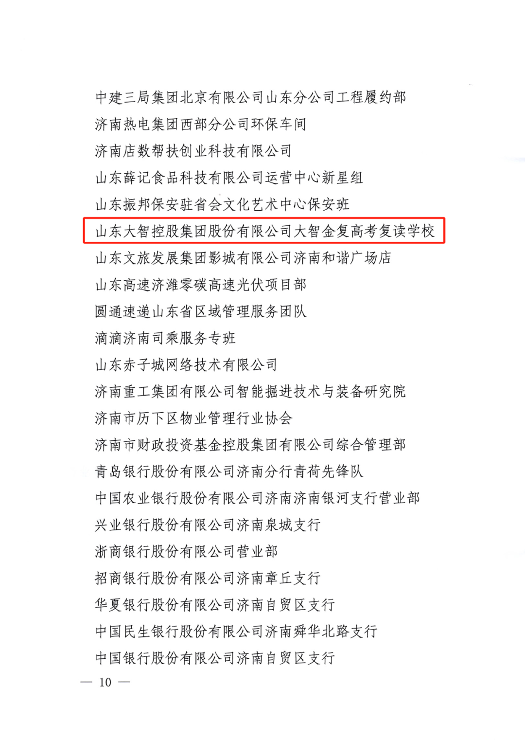 大智金復(fù)高考復(fù)讀學(xué)校榮獲2022-2023年度濟(jì)南市青年文明號(hào)榮譽(yù)稱號(hào)