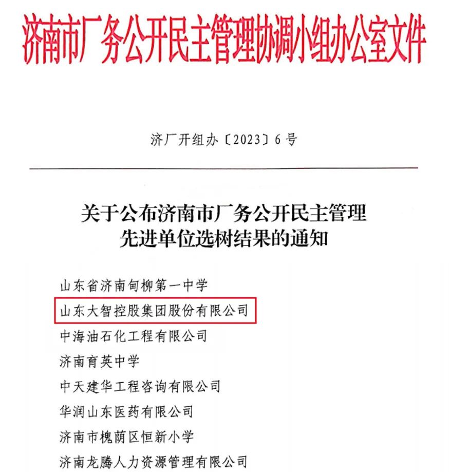 近日,濟南市廠務公開民主管理協(xié)調小組辦公室印發(fā)通知,大智控股集團獲評濟南市廠務公開民主管理先進單位。此次評選旨在深入總結濟南市各企事業(yè)單位的...
