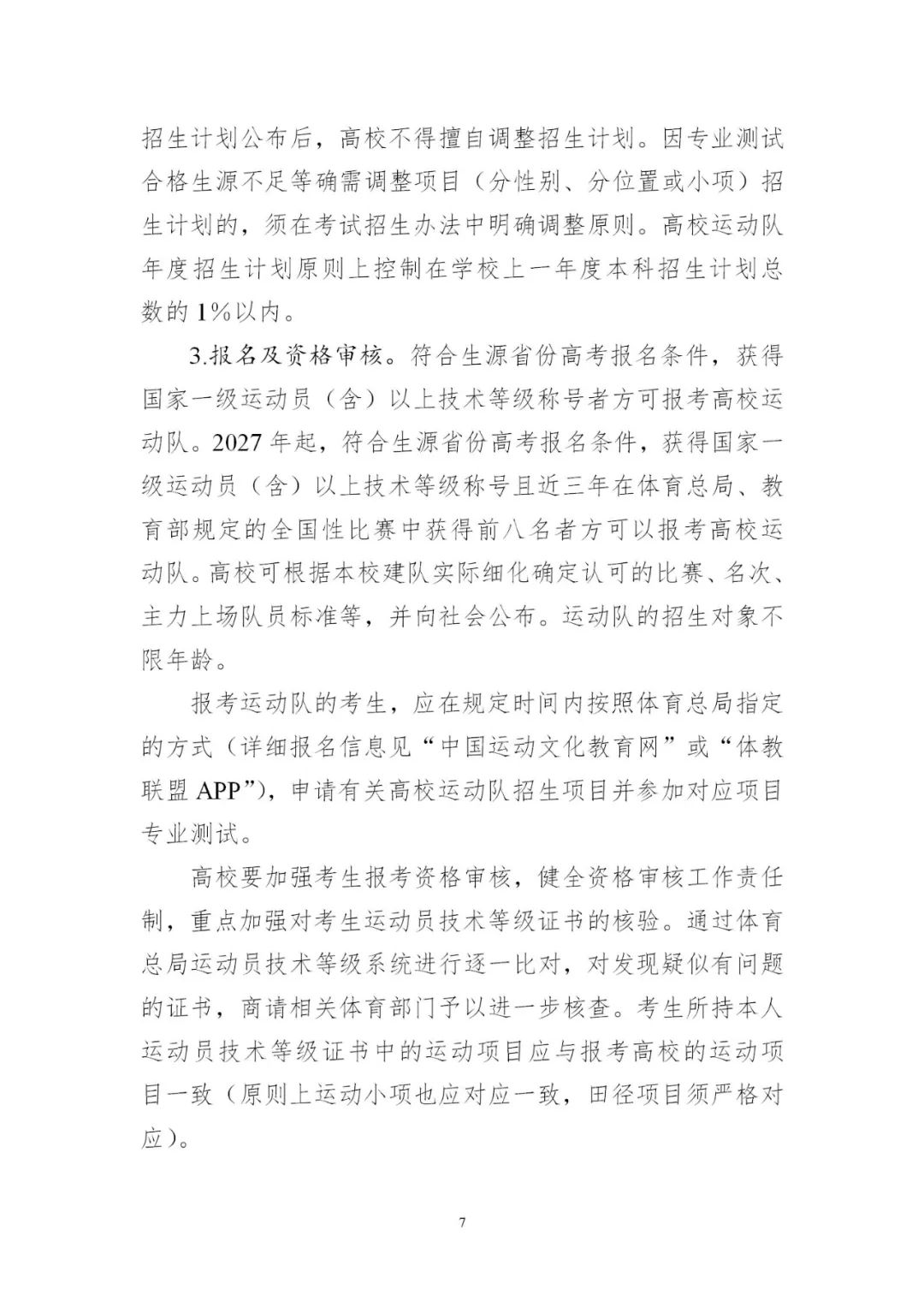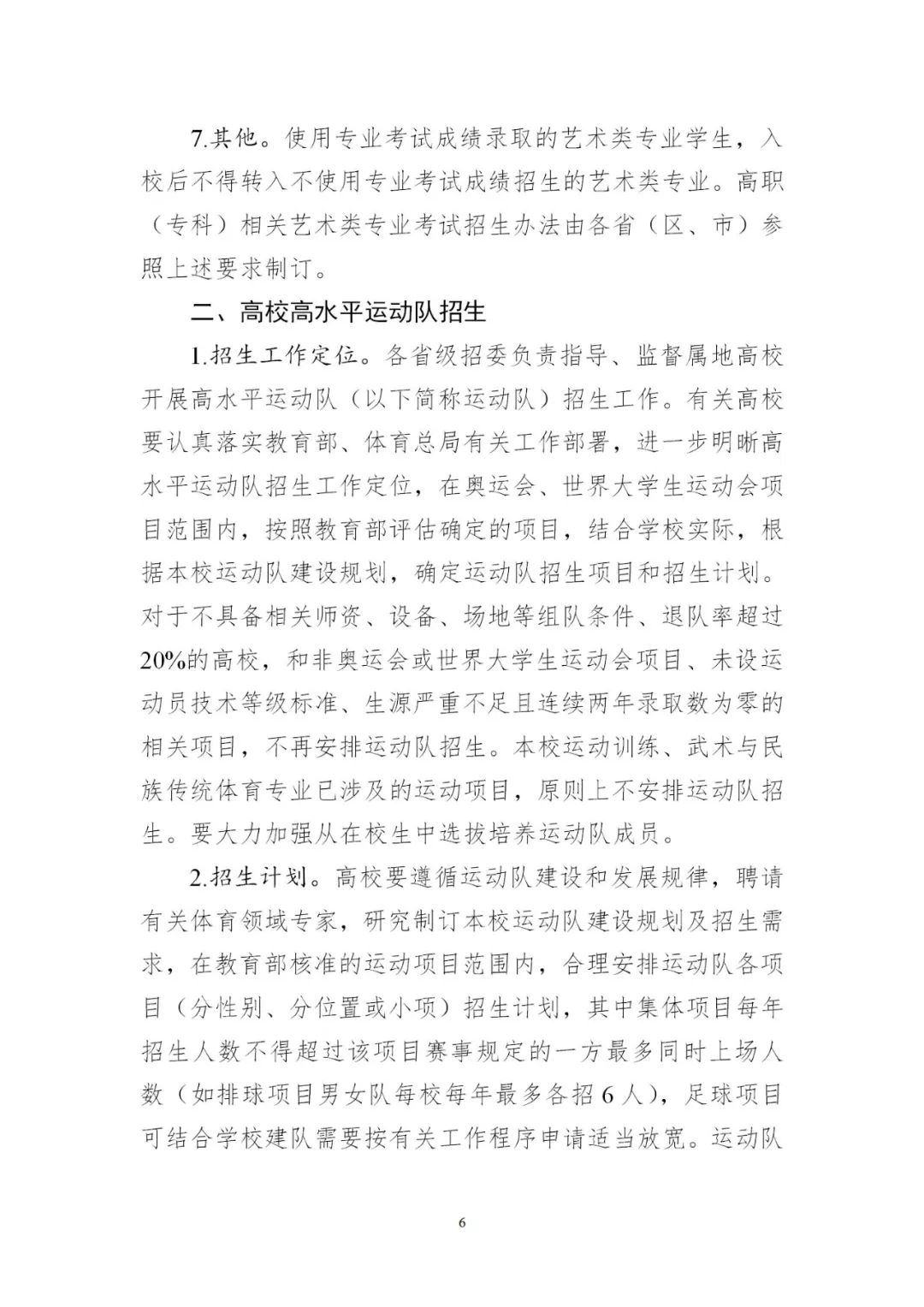 4.平穩(wěn)做好高水平運(yùn)動(dòng)隊(duì)考試招生。有關(guān)高校要緊緊圍繞高水平運(yùn)動(dòng)隊(duì)工作定位,根據(jù)學(xué)校運(yùn)動(dòng)隊(duì)建設(shè)規(guī)劃,優(yōu)化招生項(xiàng)目范圍。要嚴(yán)格招生程序,完善評(píng)價(jià)辦法和招生錄取機(jī)制,合理確定文化成績(jī)要求。2024年起,高水平運(yùn)動(dòng)隊(duì)考生文化考試成績(jī)?nèi)渴褂萌珖y(tǒng)一高考文化課考試成績(jī);專業(yè)測(cè)試全部納入全國統(tǒng)考,由體育總局牽頭組織實(shí)施,高校不再組織相關(guān)???。