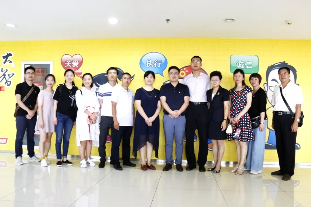 領導們參觀了大智控股集團總部。王現(xiàn)芹帶領大家參觀黨建長廊,詳細講解了大智黨建工作。