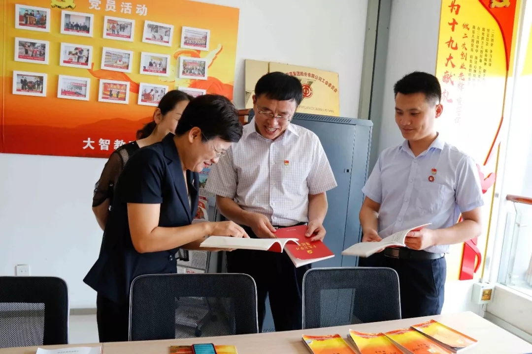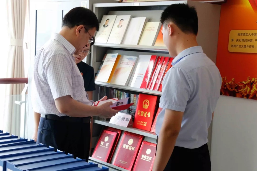 紀亮和王輝勇在王現(xiàn)芹帶領(lǐng)下參觀大智控股集團總部。