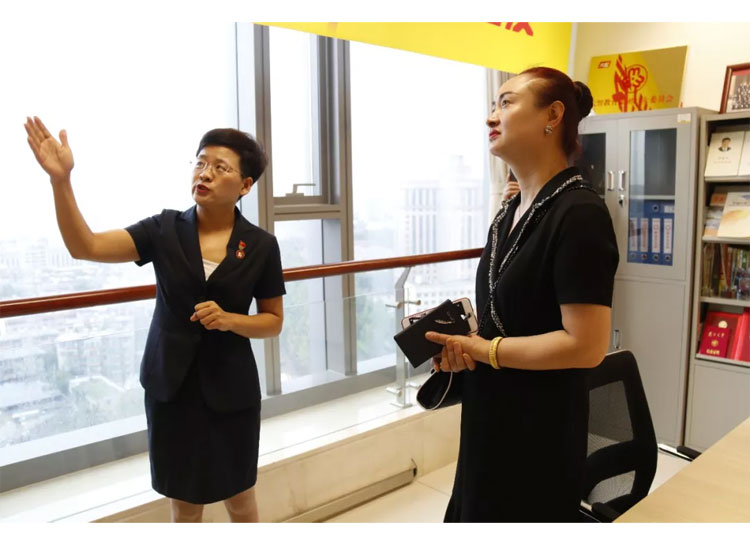王現(xiàn)芹帶領大家參觀了大智控股集團總部,向大家闡釋了大智“智惠黨建”系統(tǒng)、“一三九”黨建工作模式和大智“一帶一促”群團建設模式。