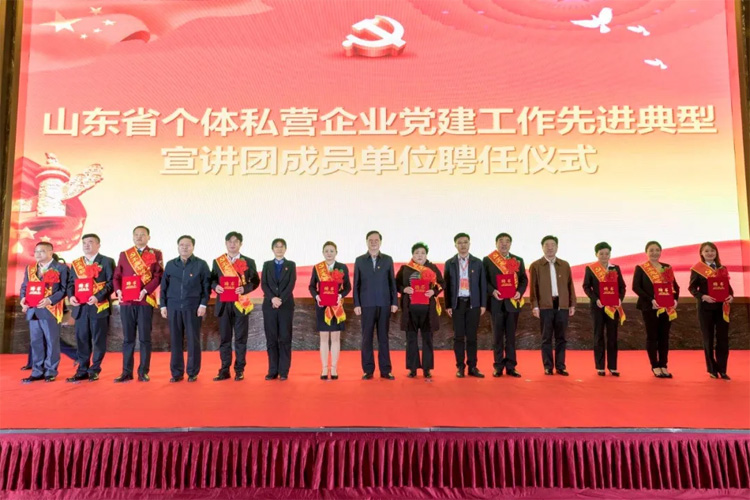 近日,全省個(gè)體私營(yíng)企業(yè)黨建先進(jìn)典型宣講暨現(xiàn)場(chǎng)觀摩會(huì)議在泰安舉行。山東省市場(chǎng)監(jiān)管局黨組書記、局長(zhǎng)侯成軍等省市場(chǎng)監(jiān)管局主要領(lǐng)導(dǎo),泰安政府主要領(lǐng)導(dǎo)、各市局主要領(lǐng)導(dǎo)及個(gè)體私營(yíng)企業(yè)主要負(fù)責(zé)人300余人參加現(xiàn)場(chǎng)會(huì)議。各市局分管領(lǐng)導(dǎo)等單位負(fù)責(zé)人3000多人參加視頻會(huì)議。會(huì)議現(xiàn)場(chǎng),山東大智控股集團(tuán)黨委書記王現(xiàn)芹做了以《智惠黨建引領(lǐng)發(fā)展》為主題的典型宣講,大智控股集團(tuán)黨委被聘任為“山東省個(gè)體私營(yíng)企業(yè)黨建工作先進(jìn)典型宣講團(tuán)成員單位”。