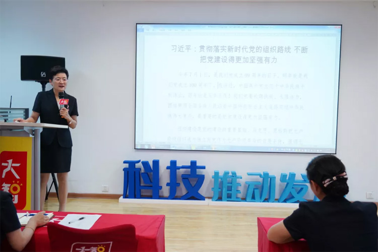 隨后,黨員們集體學(xué)習(xí)了大智控股集團(tuán)創(chuàng)始人、董事長(zhǎng)張維東對(duì)于大智2020-2021財(cái)年發(fā)展主題詞“科技推動(dòng)發(fā)展”闡釋。