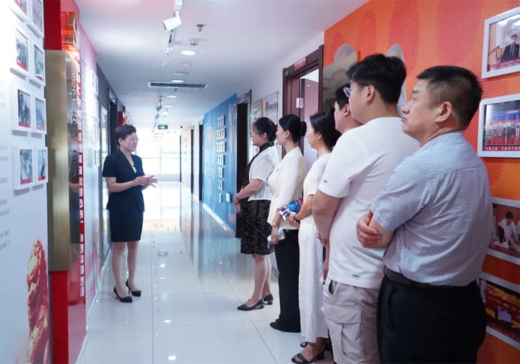 大智控股集團黨委書記王現(xiàn)芹帶領(lǐng)大家參觀了大智黨群陣地,詳細介紹了大智“智惠黨建一三九”工作模式以及黨建引領(lǐng)下的大智 “一帶一促”群團建設(shè)理念和“智惠+”群團建設(shè)模式。