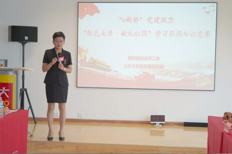 大智控股集團(tuán)黨委書記王現(xiàn)芹現(xiàn)場(chǎng)勉勵(lì)參賽選手,作為黨員要堅(jiān)定不移的學(xué)習(xí)進(jìn)步,利用“學(xué)習(xí)強(qiáng)國(guó)”平臺(tái)豐富的內(nèi)容充實(shí)自身,同時(shí)要珍惜“e新橋”黨建聯(lián)盟提供的每一次成長(zhǎng)機(jī)會(huì),互相借鑒,取長(zhǎng)補(bǔ)短,共同進(jìn)步。