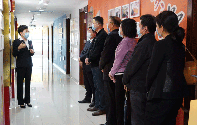 王現(xiàn)芹帶領(lǐng)大家參觀了大智黨群陣地,詳細介紹了大智“智惠黨建一三九”工作模式以及黨建引領(lǐng)下的大智 “一帶一促”群團建設(shè)理念和“智惠+”群團建設(shè)模式。
