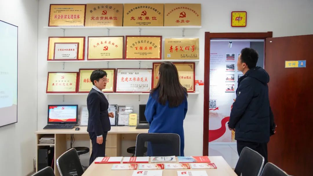 王現(xiàn)芹帶領(lǐng)大家參觀了黨建長(zhǎng)廊,詳細(xì)介紹了大智組織架構(gòu)、企業(yè)文化等相關(guān)情況,以及“智惠黨建一三九”黨建工作模式,黨建引領(lǐng)下的“一帶一促”群團(tuán)建設(shè)理念和“智惠+”群團(tuán)建設(shè)模式。大家對(duì)大智的黨建工作給予了高度評(píng)價(jià)。