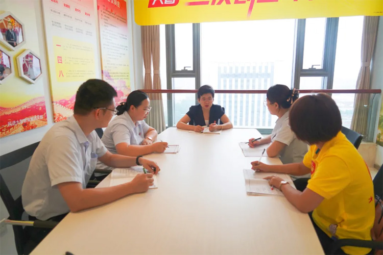 07月26日,淄博市馬尚街道組織部部長黃文娟、馬尚街道團(tuán)委書記趙淦一行到大智淄博區(qū)域調(diào)研黨團(tuán)建設(shè)工作,大智控股集團(tuán)黨委書記王現(xiàn)芹、大智淄博區(qū)...