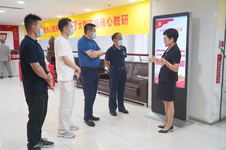 08月13日,濟南市千佛山街道辦事處黨建辦公室副主任趙孔希帶領(lǐng)轄區(qū)企業(yè)海大醫(yī)院的代表走進(jìn)大智。大智控股集團(tuán)黨委書記王現(xiàn)芹帶領(lǐng)大家參觀了大智黨...