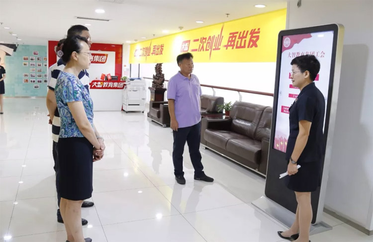 王現(xiàn)芹帶領(lǐng)大家參觀了大智教育集團總部,向大家介紹了大智工會組織架構(gòu),參觀了大智工會工作的優(yōu)秀成果。在大智黨建工作的帶領(lǐng)下,工會始終堅持把大智家人對美好生活的向往作為奮斗目標,不斷為家人謀福利。