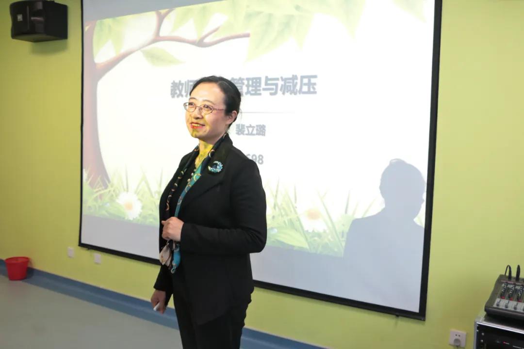 國際注冊高級(jí)心理咨詢師、高級(jí)家庭教育講師裴立璐以《教師情緒管理與減壓》為主題,在心理方面為大家解決工作上遇到的問題,教給大家如何滿足學(xué)生的需求以及家長的期待,現(xiàn)場為大家進(jìn)行了性格測試并解讀,幫助大家更好地了解自己的行為習(xí)慣。