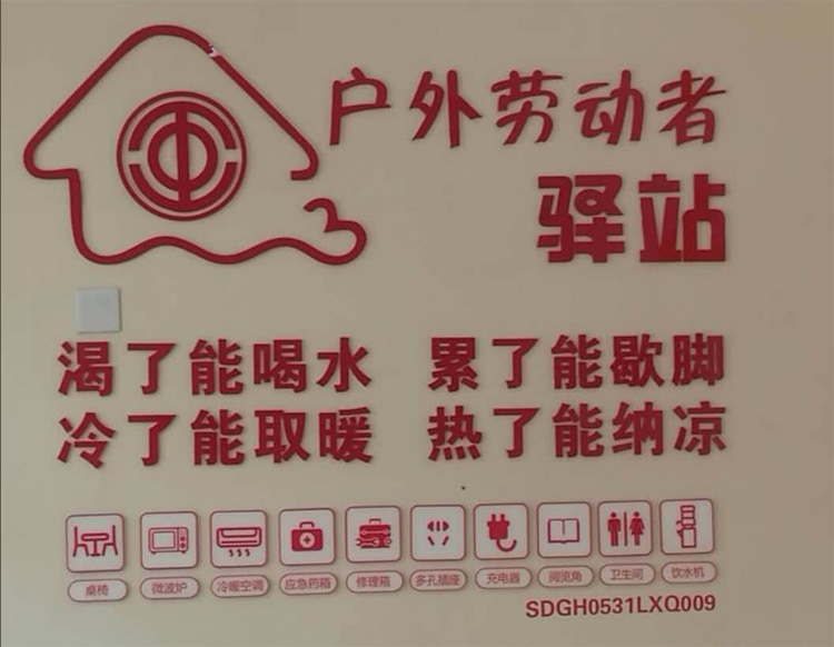 據(jù)悉,“戶(hù)外勞動(dòng)者驛站”是山東省總工會(huì)在全省范圍內(nèi)持續(xù)推動(dòng)建設(shè)的重點(diǎn)項(xiàng)目,旨在為廣大戶(hù)外勞動(dòng)者提供服務(wù)。驛站建成后,將以環(huán)衛(wèi)工、快遞員、協(xié)管員等戶(hù)外職工為主要服務(wù)對(duì)象,內(nèi)部設(shè)飲水機(jī)、空調(diào)、微波、沙發(fā)等生活設(shè)施,配備手機(jī)充電器、便民工具箱、醫(yī)療藥箱等,可有效解決戶(hù)外職工的飲水、避暑取暖、如廁、手機(jī)充電等生活實(shí)際需求,為廣大戶(hù)外勞動(dòng)者提供實(shí)實(shí)在在的溫暖與關(guān)懷。