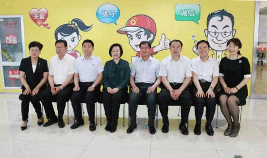 05月19日,中共濟南市委常委、統(tǒng)戰(zhàn)部部長王擁華在市社會主義學院副院長張勇,歷下區(qū)區(qū)委書記馬玉星,區(qū)委常委、辦公室主任紀亮,區(qū)委常委、統(tǒng)戰(zhàn)部部長杜寶現(xiàn)等領導以及解放路街道黨工委相關領導的陪同下來到大智教育集團,對非公企業(yè)黨建工作進行調(diào)研。大智教育集團黨委書記、副總裁、好媽媽俱樂部主席王現(xiàn)芹與大智教育集團創(chuàng)始人、董事長張維東熱情接待了調(diào)研組領導。